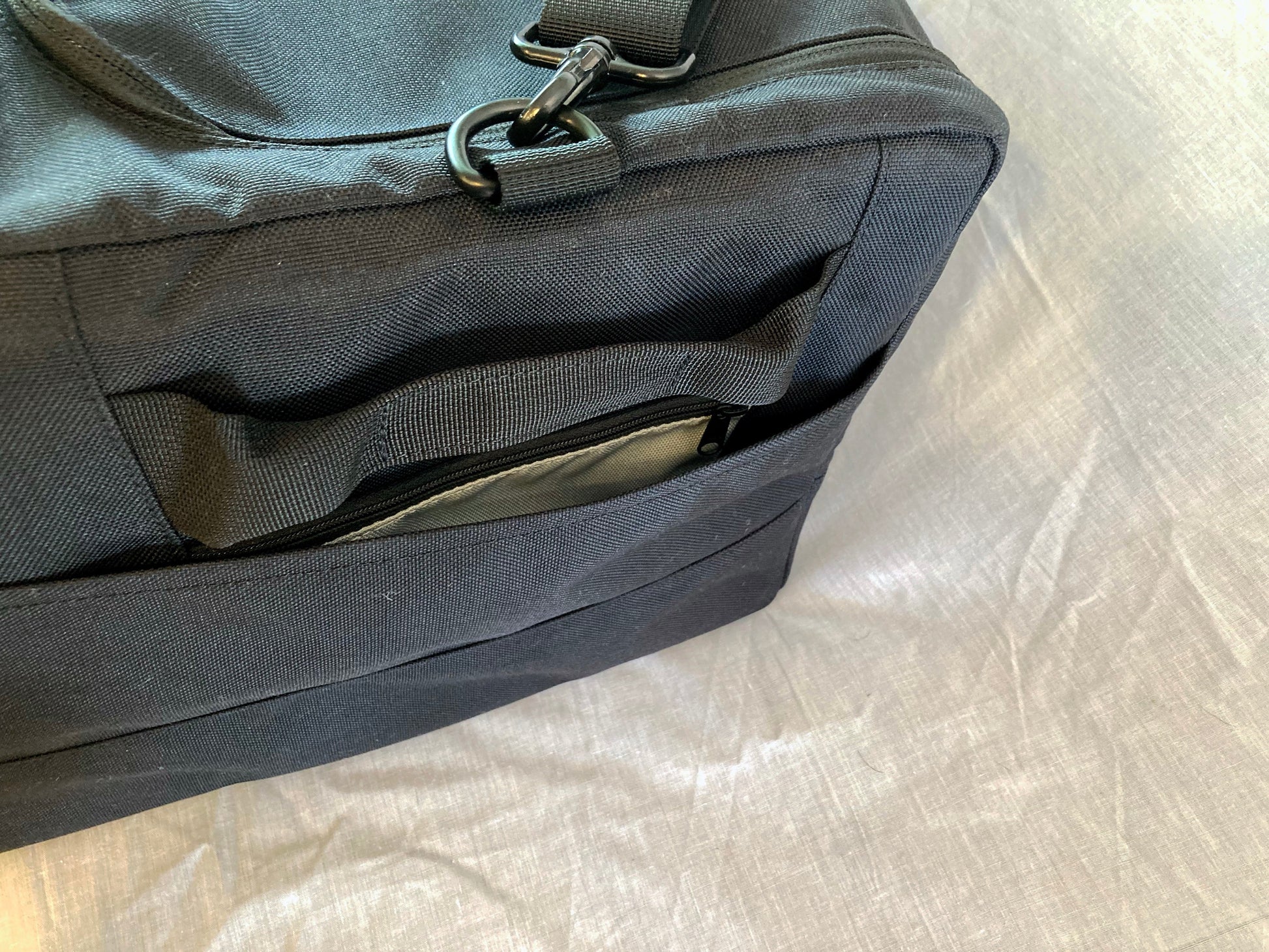 The 24" bag is our premium large travel bag. These bags function like a removable cabinet. They can be partially unzipped to reveal the inner pockets, including the fully zippered mesh pocket. Two side stuff pockets allow you to easily access items that you need more frequently and a zippered side pocket is perfect for a cell phone and features a key leash. The bag has side handles for easy carrying and removable padded shoulder strap featuring metal hardware that is easy to clip and unclip.