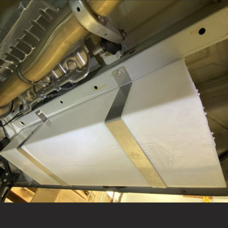 The 11 gallon Sprinter undercarriage tank is designed to fit under the slider door area. (2) Stainless steel laser cut straps, hardware and rivnuts are included. Tank fits Mercedes Sprinter 2007-present. It may fit other makes and models as well.